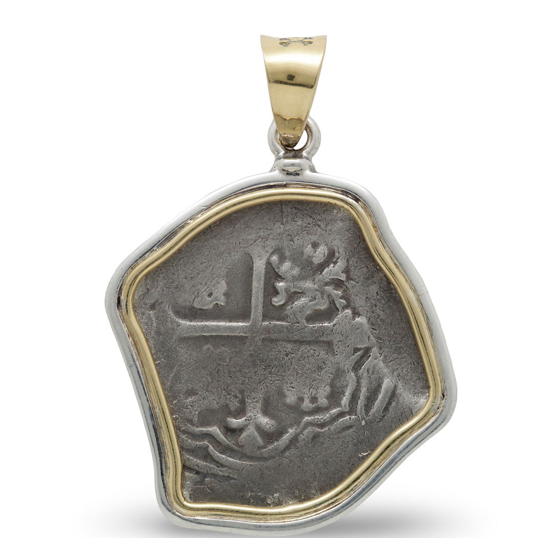 4 Reales Spanish Cob 1715 Coin, 14K and Sterling Silver Pendant, 8104