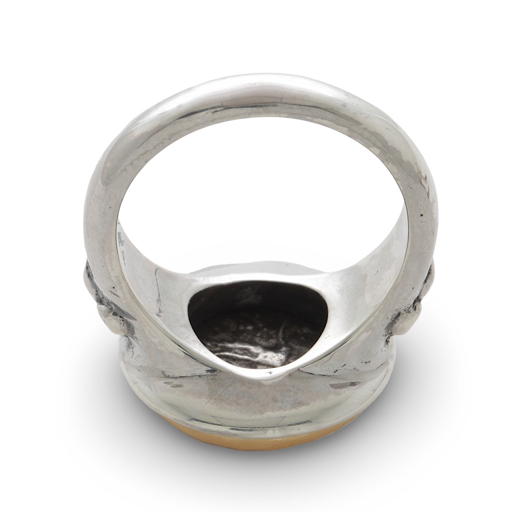 Indo-Scythian Drachma Coin, Silver Ring, 18K Gold Bezel, 8044