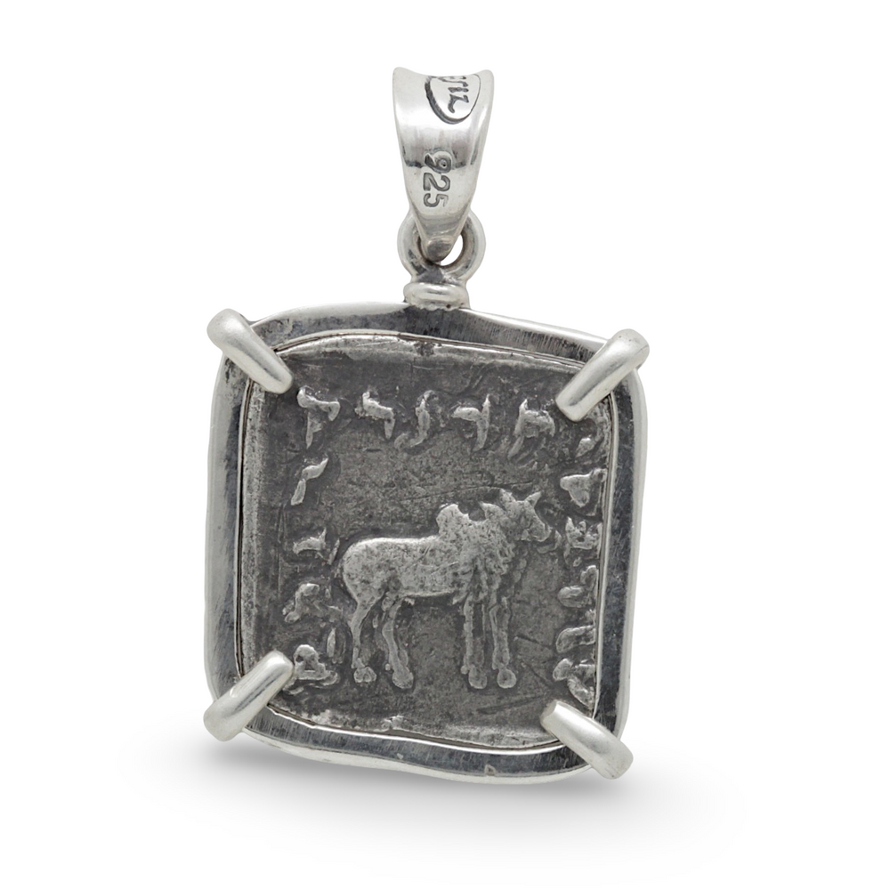 Elephant/Zebu, Sterling Silver Pendant, Apollodotus I, Baktria Drachma Coin, ID15431