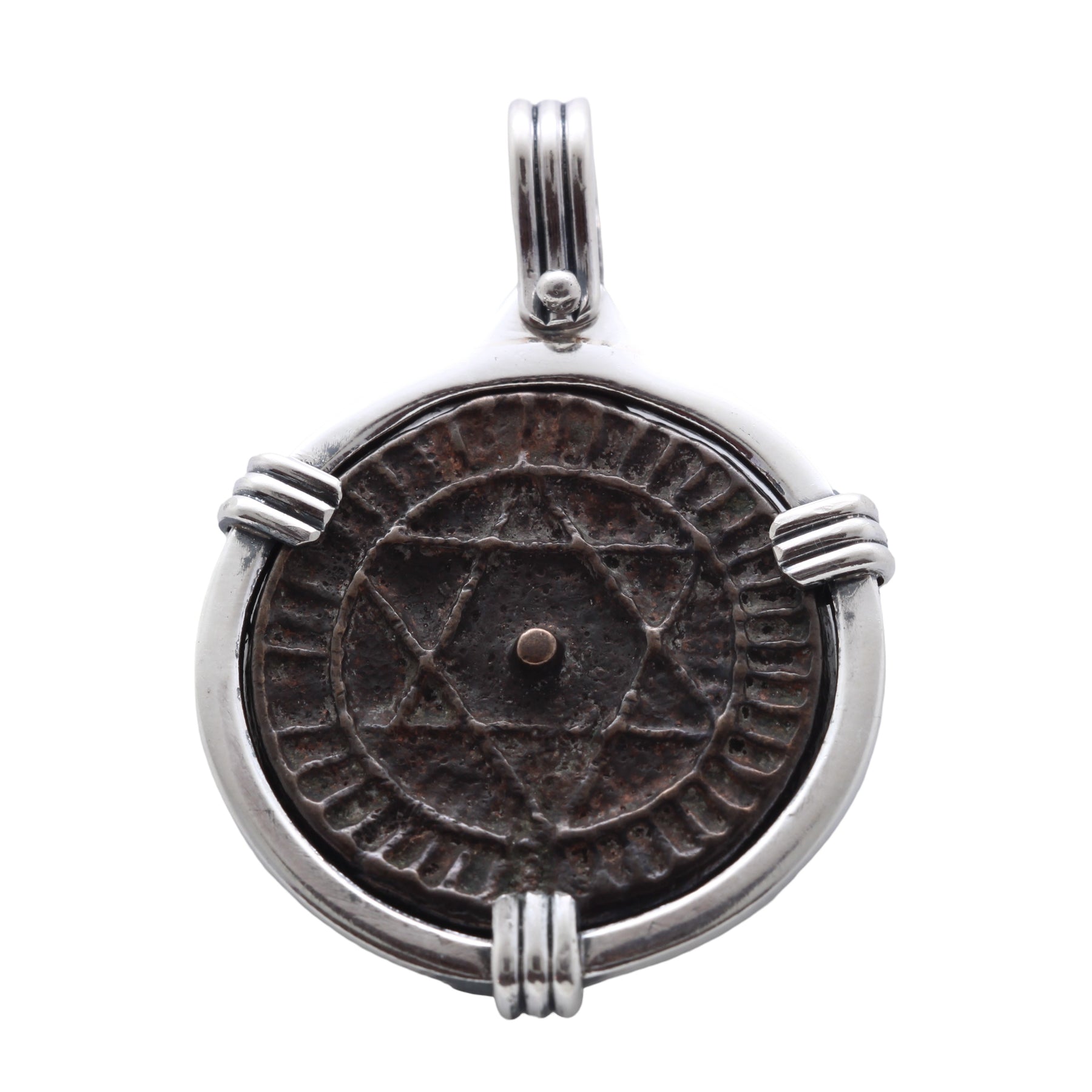 Sterling Silver Pendant set with authentic Moroccan 2 Faluse coin. This pendant does not include a chain, please navigate to our "Chains" section if interested.
