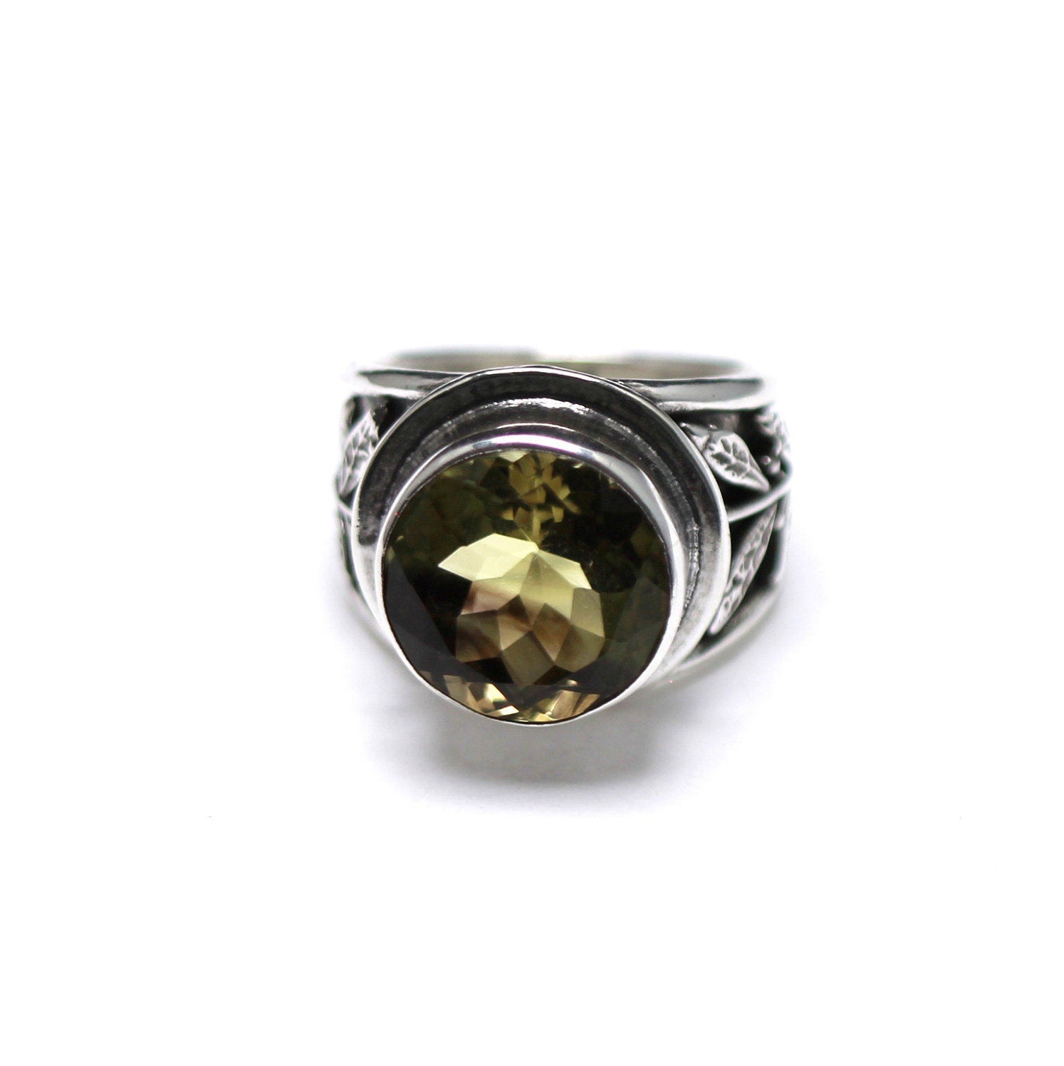 Silver Ring, Prehnite Stone, Lemon/Yellow, 6864