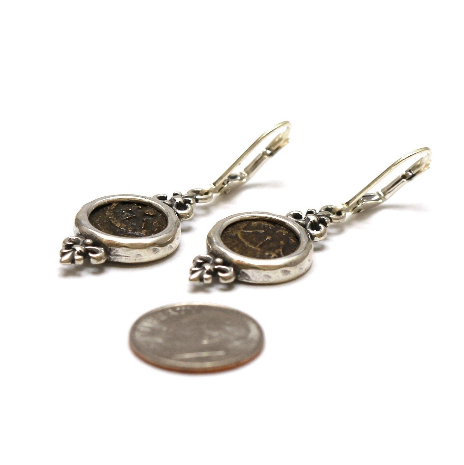 Sterling Silver Earrings, Widows Mite Prutah Coins, 7040